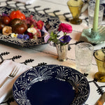 Co-founder Ariadne’s favorite design, Cobalt Lace is handfinished with expressive strokes which can be interpreted as a geometric motif, or akin to meadow swaying in the breeze. Richly textured, the range recalls traditional Hungarian pottery.
