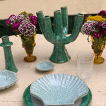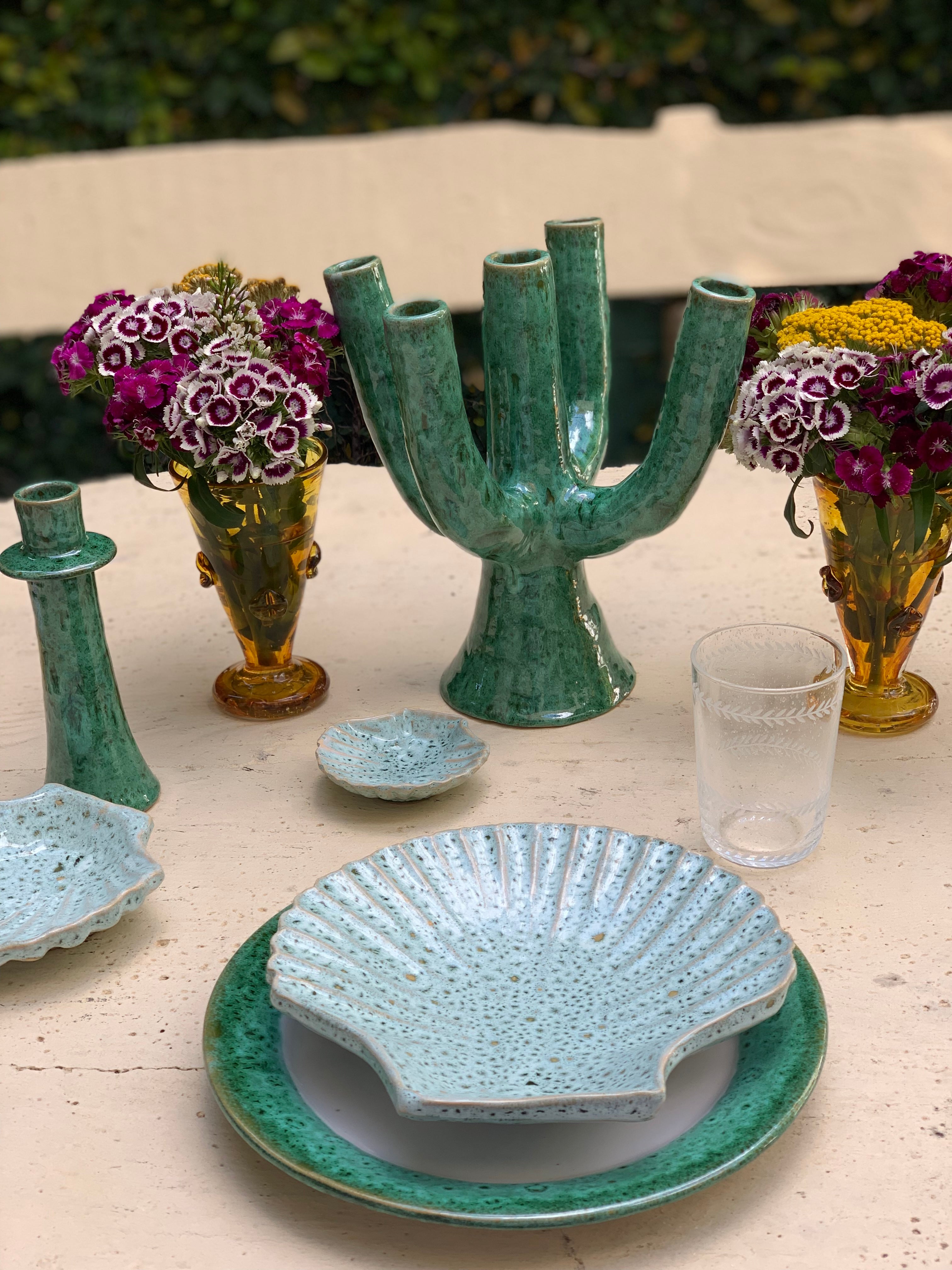 Beloved by Carolina and her daughters, the myriad uses of the beautifully articulated sea shell has been translated into captivating designs spanning candle holders to scene-stealing platters.