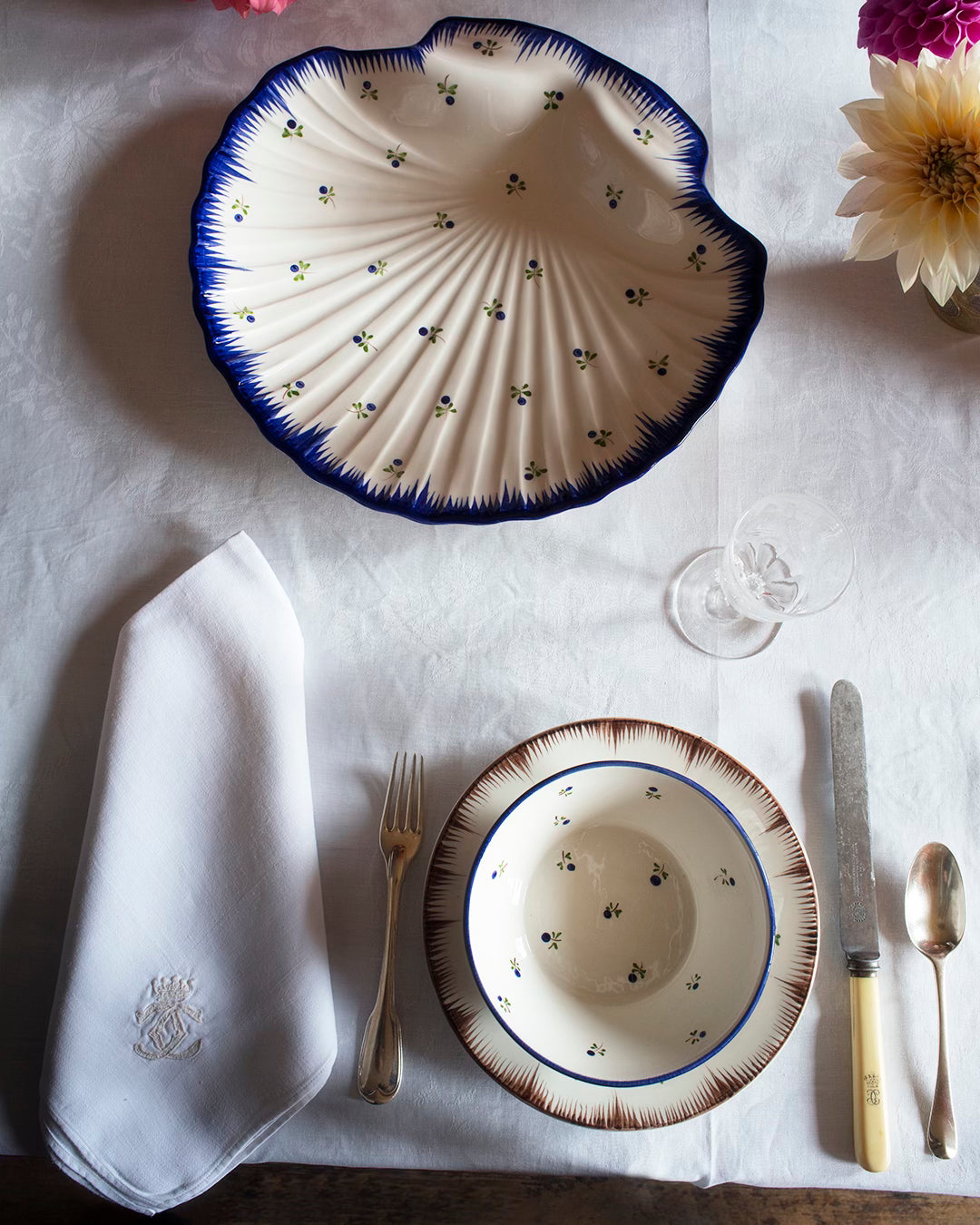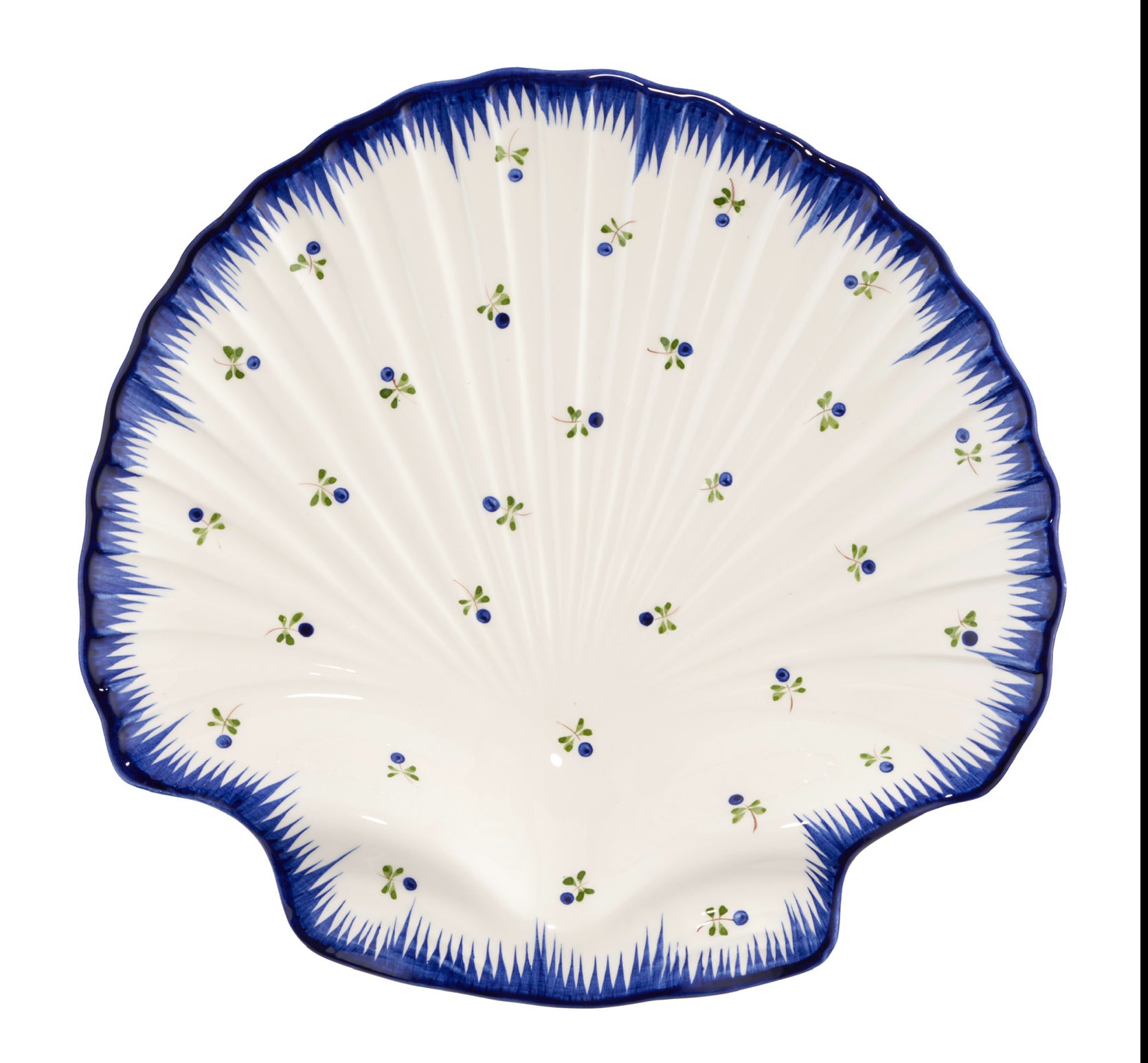 Handpainted in Portugal, the Lily platter, designed by Remy Renzullo, was inspired by 18th century French faience.