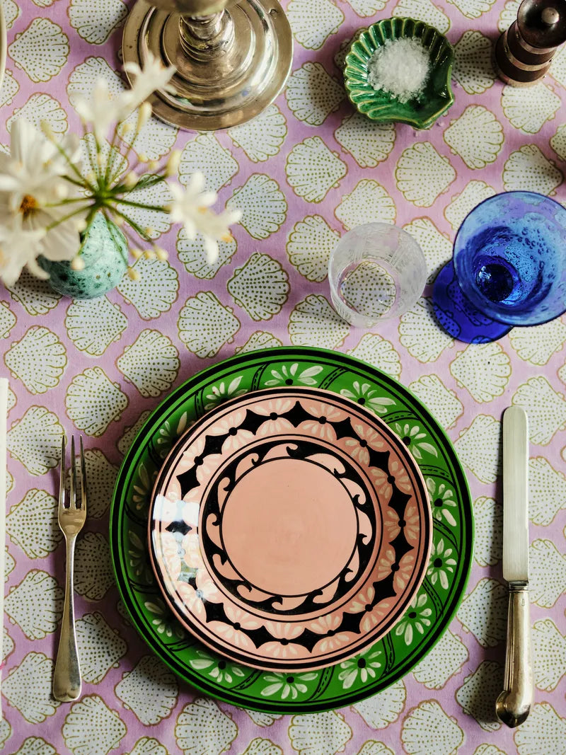 Inspired by an antique Greek dish featuring an intricate olive decoration, Anna boasts a painterly motif that is simplistic yet quietly impactful. Mix and match colorways for a spirited tabletop.