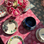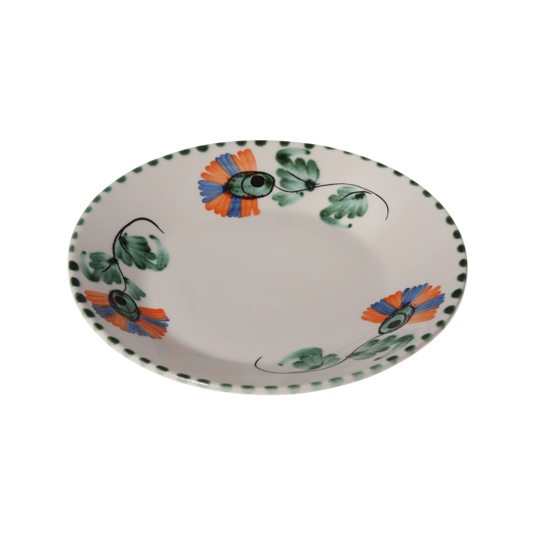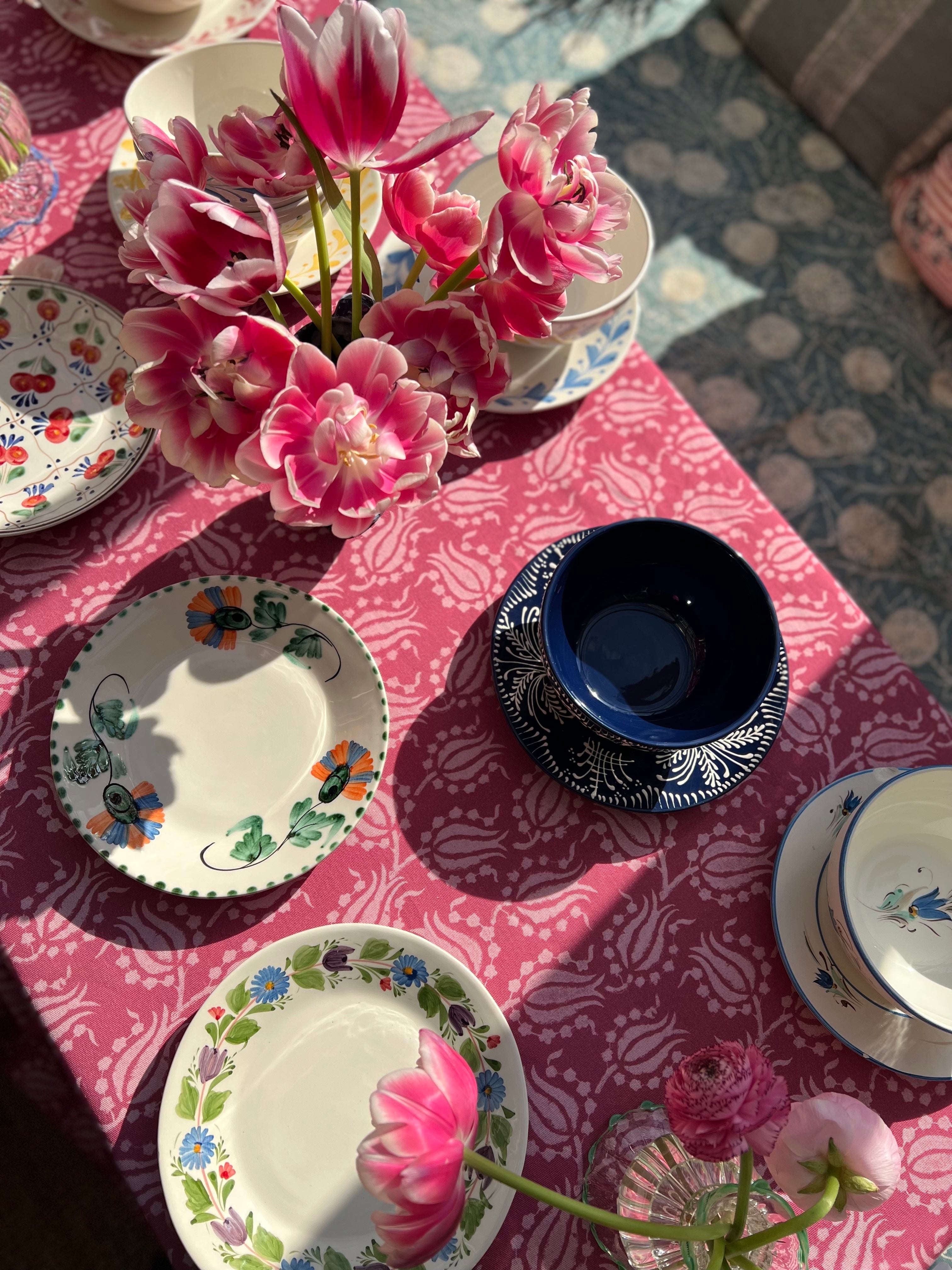 The Carnation dessert plate is handcrafted in Portugal with hand-painted floral motifs inspired by Carolina’s favorite flower, the carnation.
