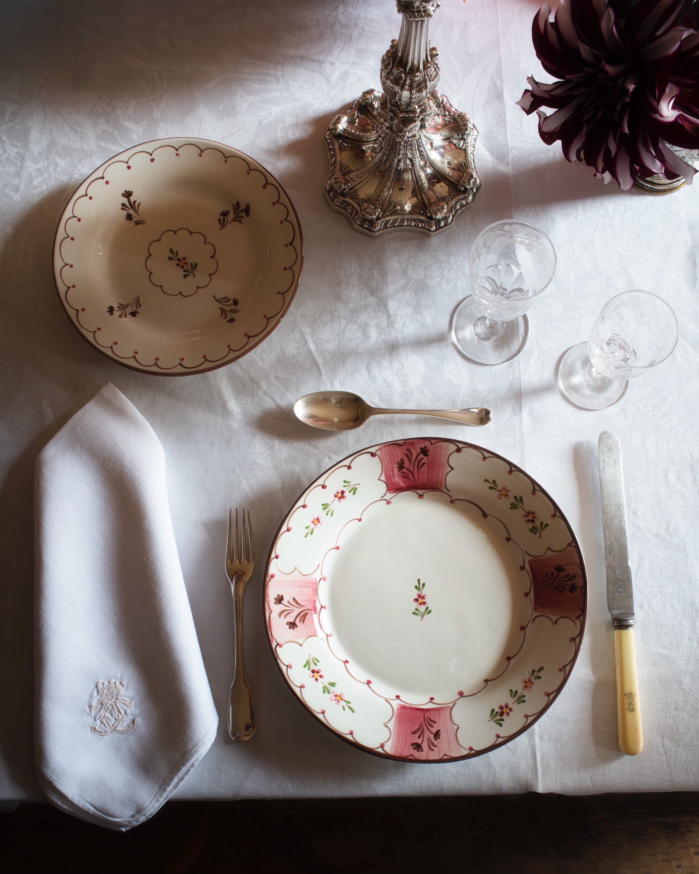 Handpainted in Portugal, the Alexandra dessert plate, designed by Remy Renzullo, was inspired by 18th century French faience.