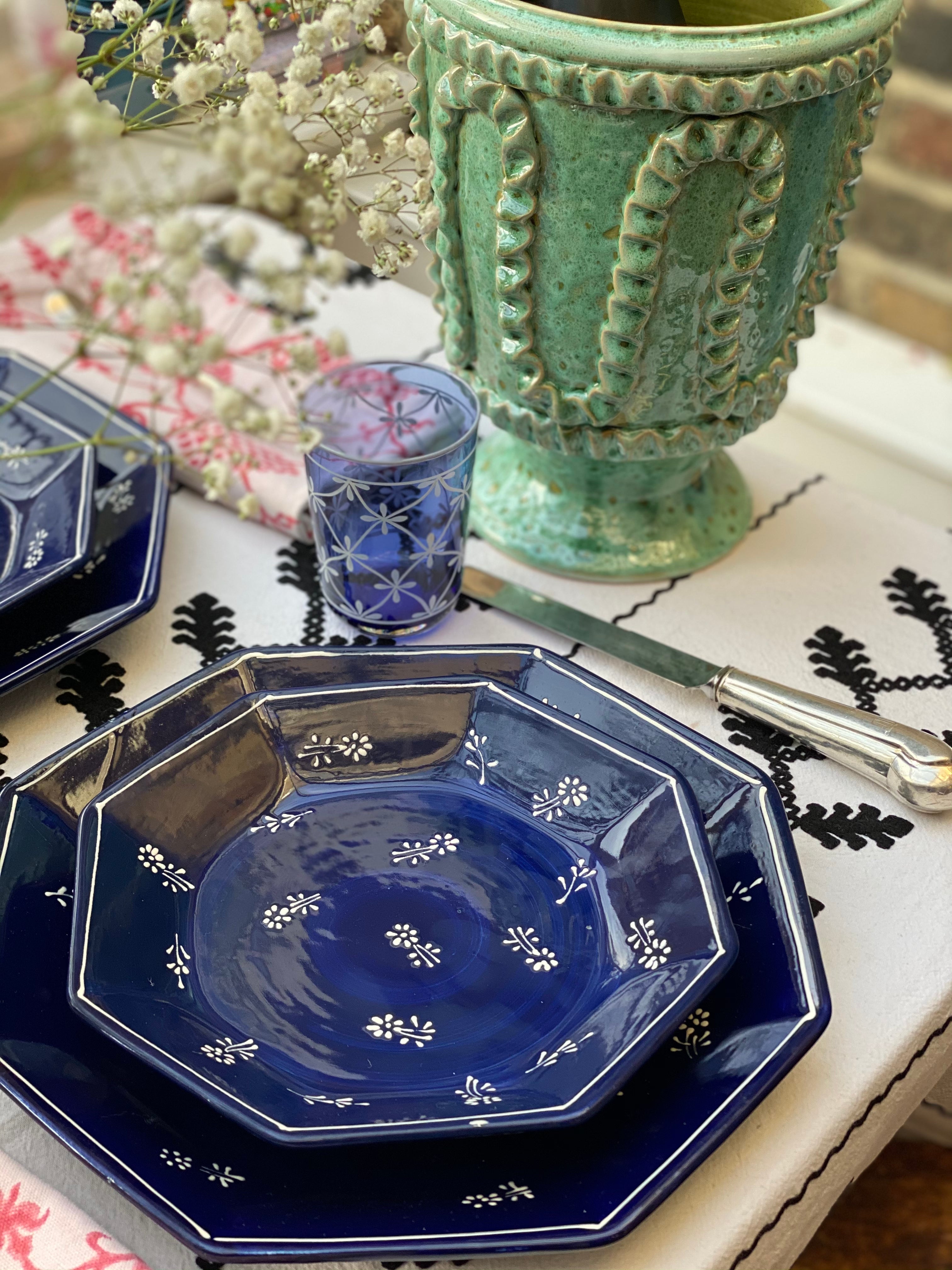 Cobalt Dessert Plate hand-painted in Portugal from the Remy Renzullo x Carolina Irving & Daughters collaboration.