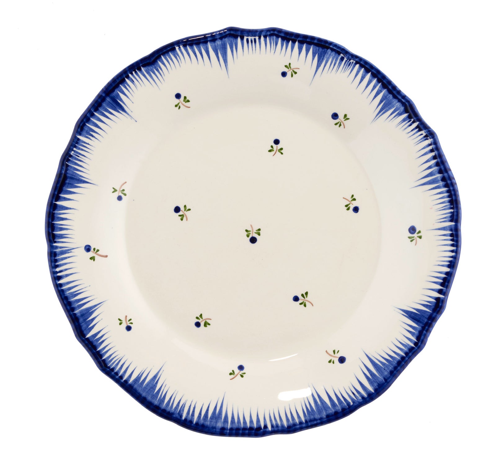 Handpainted in Portugal, the Lily dinner plate, designed by Remy Renzullo, was inspired by 18th century French faience.