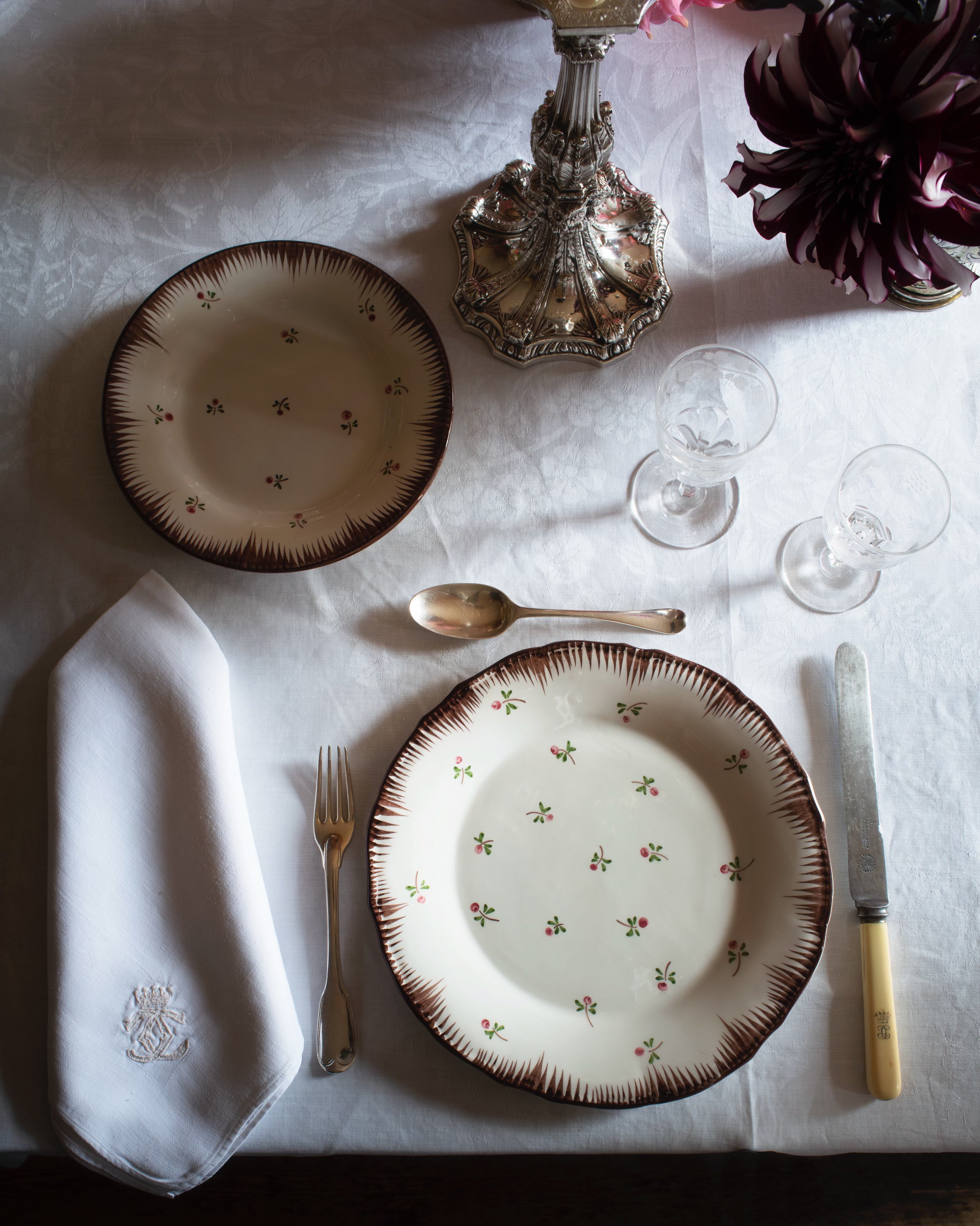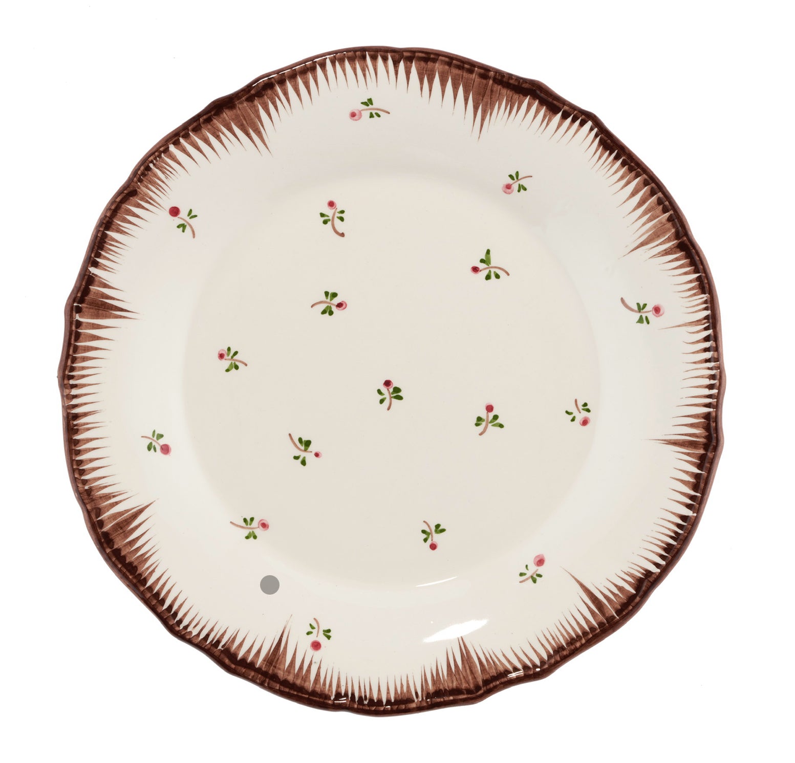 Handpainted in Portugal, the Lily dessert plate, designed by Remy Renzullo, was inspired by 18th century French faience.