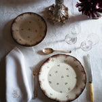Inspired by an antique Greek dish featuring an intricate olive decoration, Anna boasts a painterly motif that is simplistic yet quietly impactful. Mix and match colorways for a spirited tabletop.
