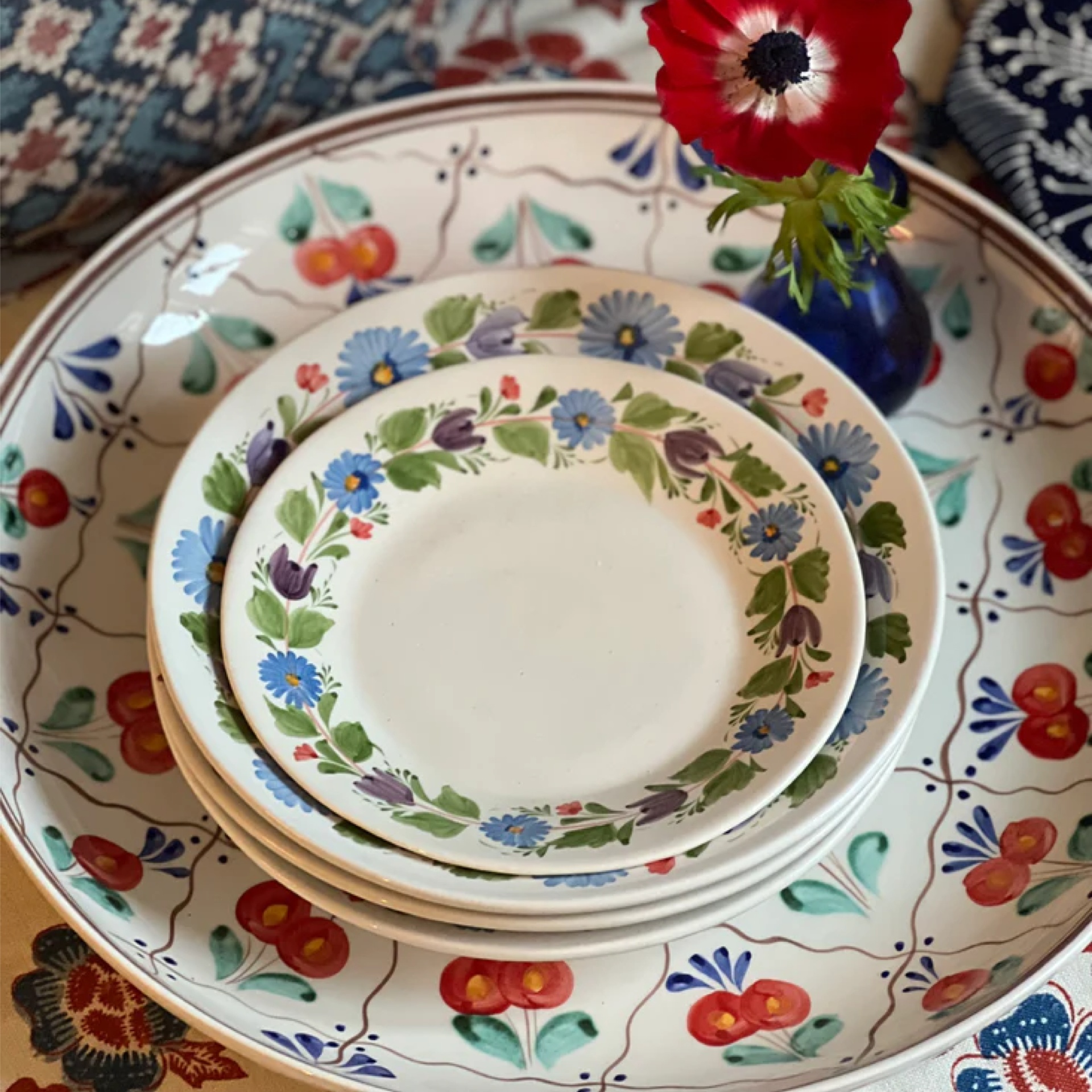 Named after Carolina's late sister, the Maria Luisa design has been influenced by an 18th century Spanish plate. Hand-painted in Portugal, it takes several hours to finish one plate.