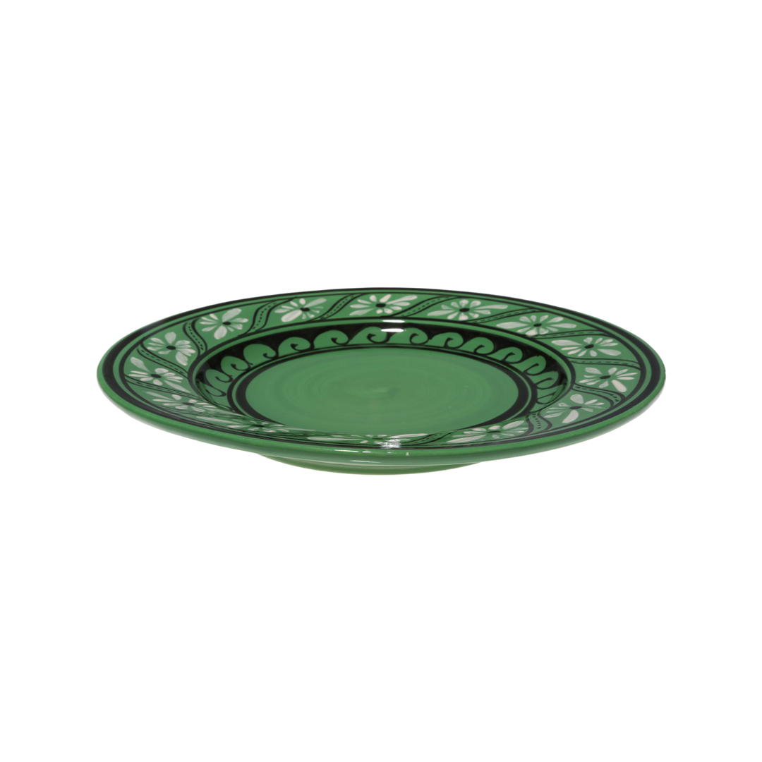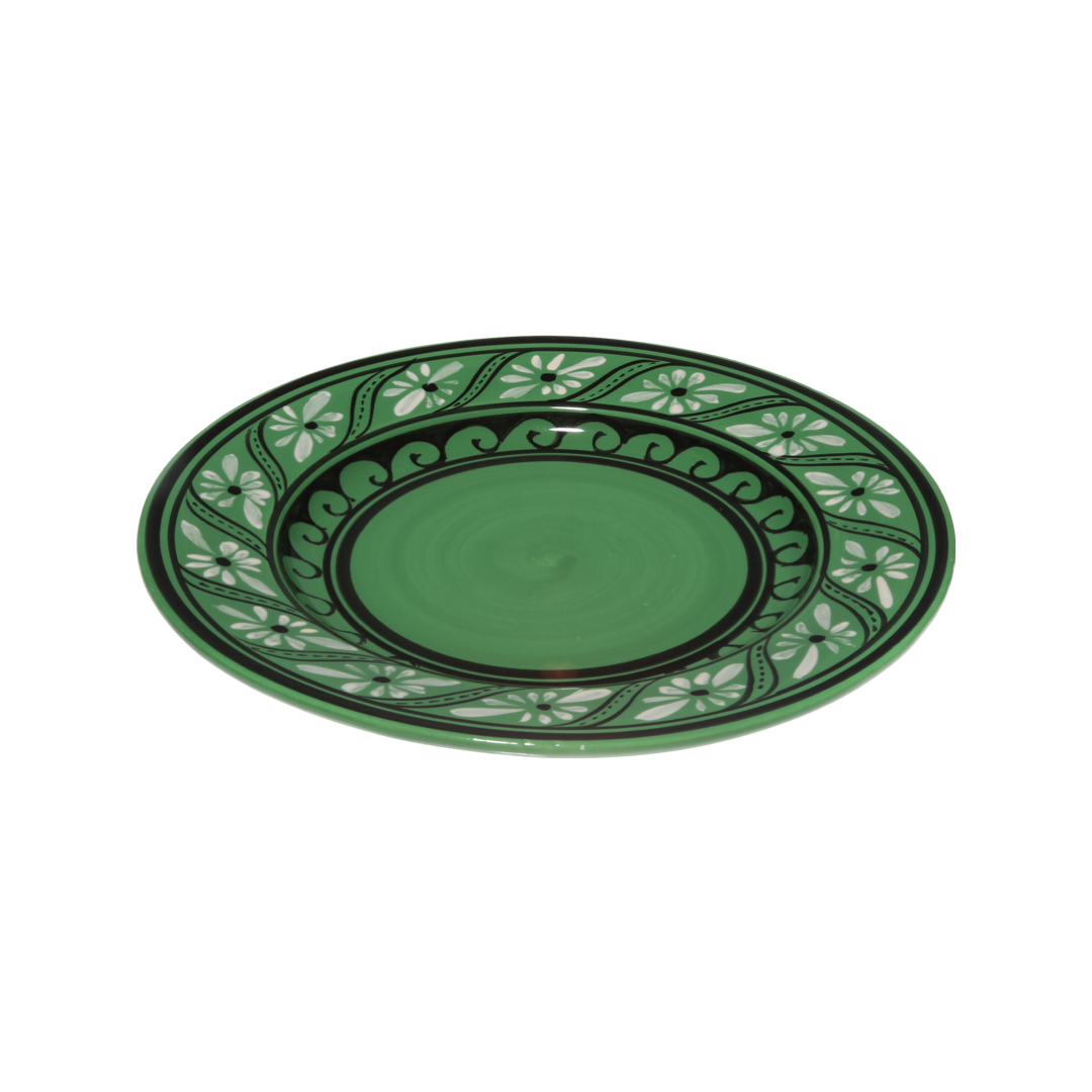 Inspired by Ancient Greek pottery, the beautifully hand painted Green Gigi dinner plate combines modern colour with traditional design. The green background contrasts perfectly with the bold typical floral and wave patterns on the border. Match it with the Green Gigi dessert plate, or mix the colours and opt for the Pink or Aqua!